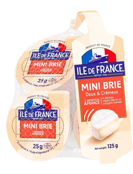 Іль-де-Франс Міні-Брі – це вершковий натуральний міні-сир із надзвичайно м’яким смаком. Легкий і чистий для споживання порівняно з іншими вершковими сирами. Він ідеально підходить для поблажливих уважних і корисних перекусів.