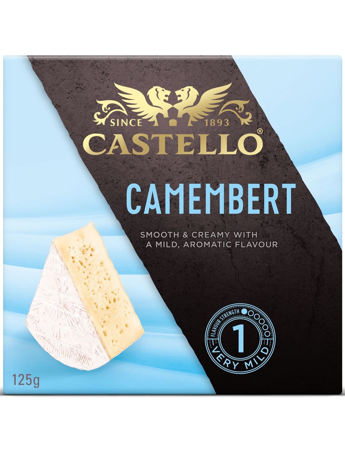 Сир Castello Camembert з білою пліснявою 50% 125г. Склад: молоко пастеризоване коров`яче, сіль, закваска молочнокислих культур, фермент сичужний мікробіальний, пліснява культура (Penicilium candidium).
