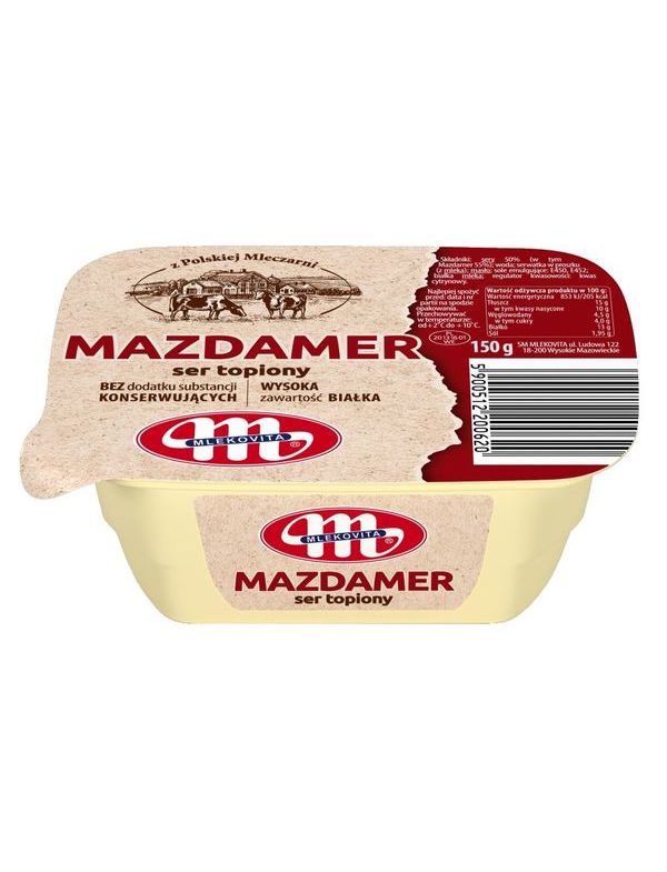 Плавлений сир Mlekovita Mazdamer володіє особливо м'якою пастообразной текстурою і насиченим вершковим смаком і тонким приємним ароматом. Ідеально підходить для приготування сендвічів і бутербродів, різноманітних запіканок, а також італійської пасти і піци.
