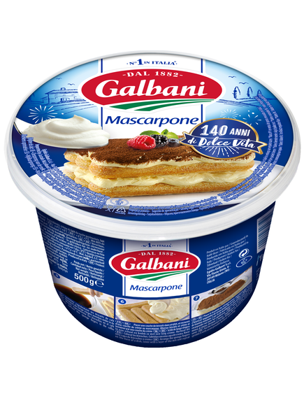 Сир Galbani Mascarpone свіжий 80% 500 г. Склад: вершки пастеризовані, молоко пастеризоване, регулятор кислотності: лимонна кислота.