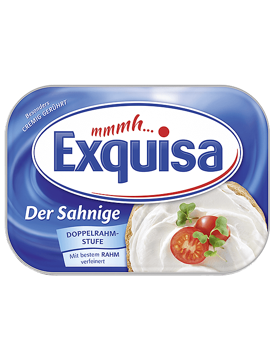 Exquisa Вершкова природа особливо вершкова і доповнена найкращими вершками. Завдяки більш ніж 100-річному досвіду в нашому сімейному бізнесі в переробці молока, свіжому молоці від місцевих фермерів і спеціальному методі виробництва ми пропонуємо вам насолоду від чудового вершкового сиру з незрівнянним смаком Exquisa. Спробуйте – класичний на хлібі, а також під час приготування та випічки.