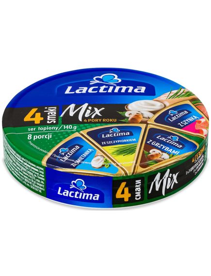 Сир плавлений порційний з цибулею зеленою: сири 45% (молоко коров'яче пастеризоване, сіль кухонна, лакто-культури, стабілізатор Е509, сичужний фермент тваринного походження), вода, масло вершкове, молоко сухе знежирене, емульгуючі солі (Е331, E339 Е450, Е452), молочні білки, сироватка порошок (з молока), цибуля зелена 1%, сіль, загусники (каррагінан, камедь сарану).