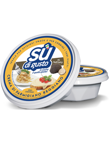 Вибух смаку, який стає дорогоцінним на кухні, щоб збагатити швидкі закуски з гарячими крутонами та канапе. Ідеальна приправа для різотто, пасти та супів, крем з пармезану Reggiano з трюфелем надає унікального та особливого смаку простим вареним або сирим овочам та прикрашає основні страви на основі м'яса.