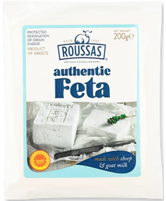 Склад: млоко овече та козяче пастеризоване, мікробний сичуг, культура, сіль морська. Виготовляється з овечого та козячого молока в гірському регіоні Альмірос, центральна Греція, офіційно визнана провінція з виробництва фети, яка має статус PDO. Містить молоко. Сир фета PDO Roussas...