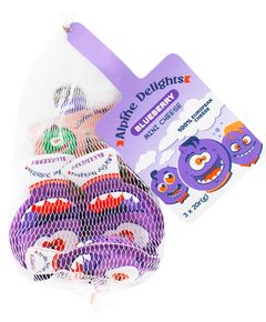 Склад: вода, сир, вершкове масло, цукор, молочний білок, чорничний смак 3% (вода, цукор, чорничний сік концентрат, загущувач (Е1422), натуральний ароматизатор, концентрат з моркви та гібіскуса, регулятор кислотності (Е330), консервант (Е202), технічна допоміжна речовина (Е471)), желатин, сухе...