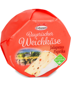 Пряний, ароматний м'який сир, покритий цвіллю камамбер. Рівномірно доповнений перцем і халапеньо. Виготовляється з найкращого баварського молока. Без лактози завдяки природному дозріванню.
