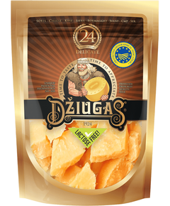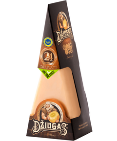 Склад: молоко коров'яче, сіль кухонна харчова, мезофільні та термофільні молочнокислі мікроорганізми, молокозгортуючий ферментний препарат мікробного походження. М’який твердий сир DŽIUGAS, який дозріває протягом 12 місяців, – це сир, який пропонує ніжні відтінки типових якостей зрілого сиру....