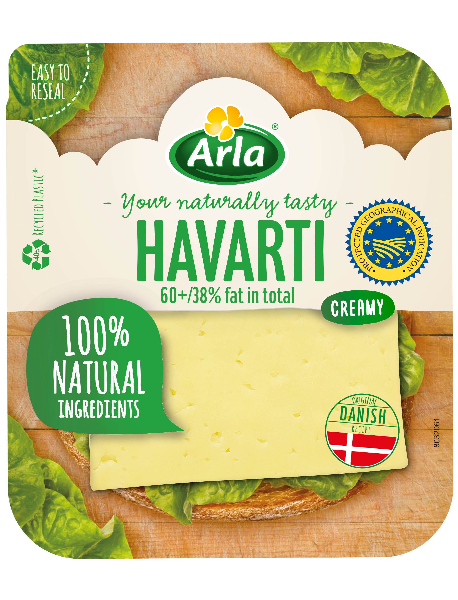 Нарізаний вершковий сир Arla® Havarti, традиційний датський хаварті, м’який і вершковий, ідеально підходить для бутербродів і закусок, гарячих і холодних. ARLA® Havarti нарізаний продається в практичному контейнері, що самозакривається, і з тонким аркушем паперу між шматочками, щоб вони не прилипали. ARLA® Havarti ідеально підходить для всієї родини завдяки своєму м’якому смаку. ARLA® Havarti є найвідомішим датським сиром. Любителі сиру оцінять його характерний аромат і консистенцію, властиву природі.