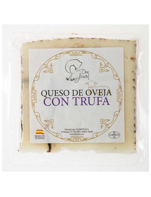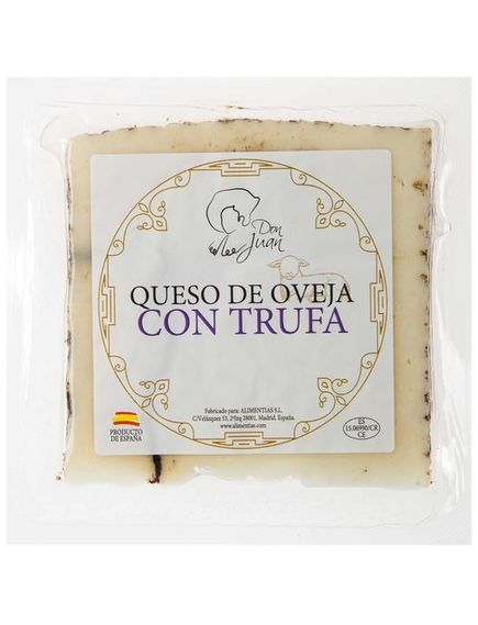 Склад: молоко овече пастаризоване, паста трюфельна мінімум 3% (гриб Agaris Bispora 65%, олія соняшникова, гриб Boletus Edulis, трюфель літній Tuber Aestivum 8%, сіль харчова, перець, петрушка, ароматизатор трюфель і часник), сіль харчова, стабілізатор (хлорид кальцію), сичужний фермент, закваска для сиру, консервант Е1105 (лізоцим з яйця).