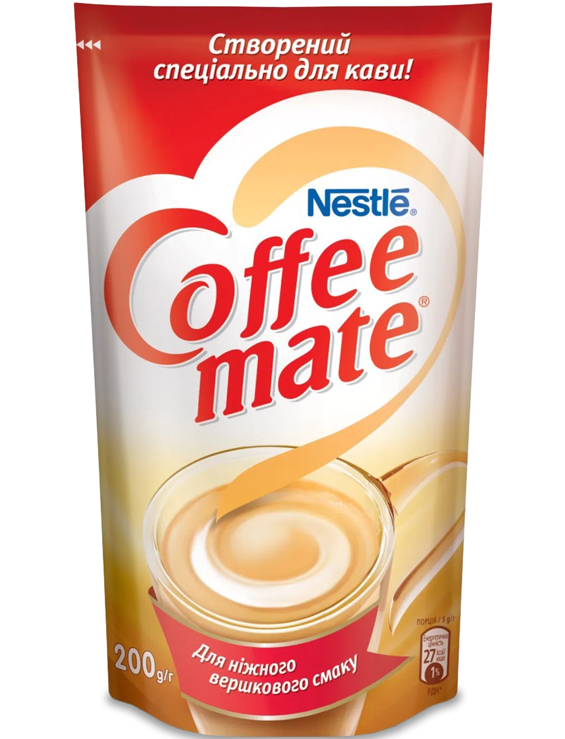 Ви п'єте каву з молоком? З Coffee-mate набагато смачніше! Вершки Coffee-mate додадуть вашій улюбленій каві ніжного вершкового смаку і при цьому збережуть властивий їй багатий кавовий смак. На відміну від молока, Coffee-mate підкреслює смак кави, а не розбавляє його. Створений спеціально для кави. Довірте каву Coffee-mate!