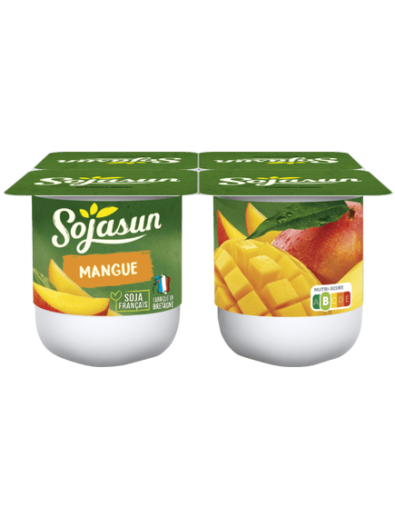 Склад: соєвий сік* 80%, манго (11%), цукор, кукурудзяний крохмаль, загущувач: борошно з насіння ріжкового дерева, натуральний ароматизатор, концентрований лимонний сік, солі кальцію, добірні ферменти.