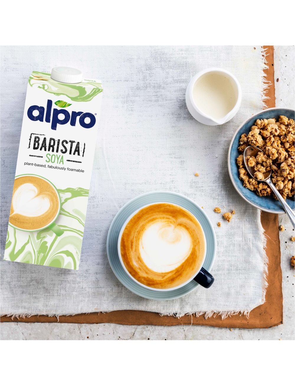 Склад: соєва основа (вода, лущені соєві боби (8,7%)), екстракт яблука, регулятори кислотності (фосфати калію), кальцій (карбонат кальцію), морська сіль, стабілізатор (гелланова камедь), вітаміни (В2, В12, D2).