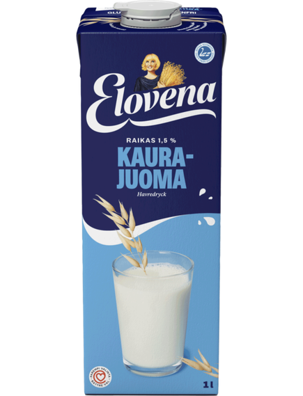 Ви можете використовувати вівсяний напій Еловена, як і звичайне молоко, як свіжий напій, з кашами та крупами, у випічці та кулінарії. Побалуйте себе Elovena, наприклад, кашею, звареною з вівсяних пластівців і вівсяним напоєм. Продукт виготовляється з фінського вівса з нейтральною вуглецевою енергією в Райсіо. Sydänmerkki, присвоєний продукту, означає, що він є більш здоровим вибором у власній групі продуктів. 100% на рослинній основі. Не містить глютену. Веганський.