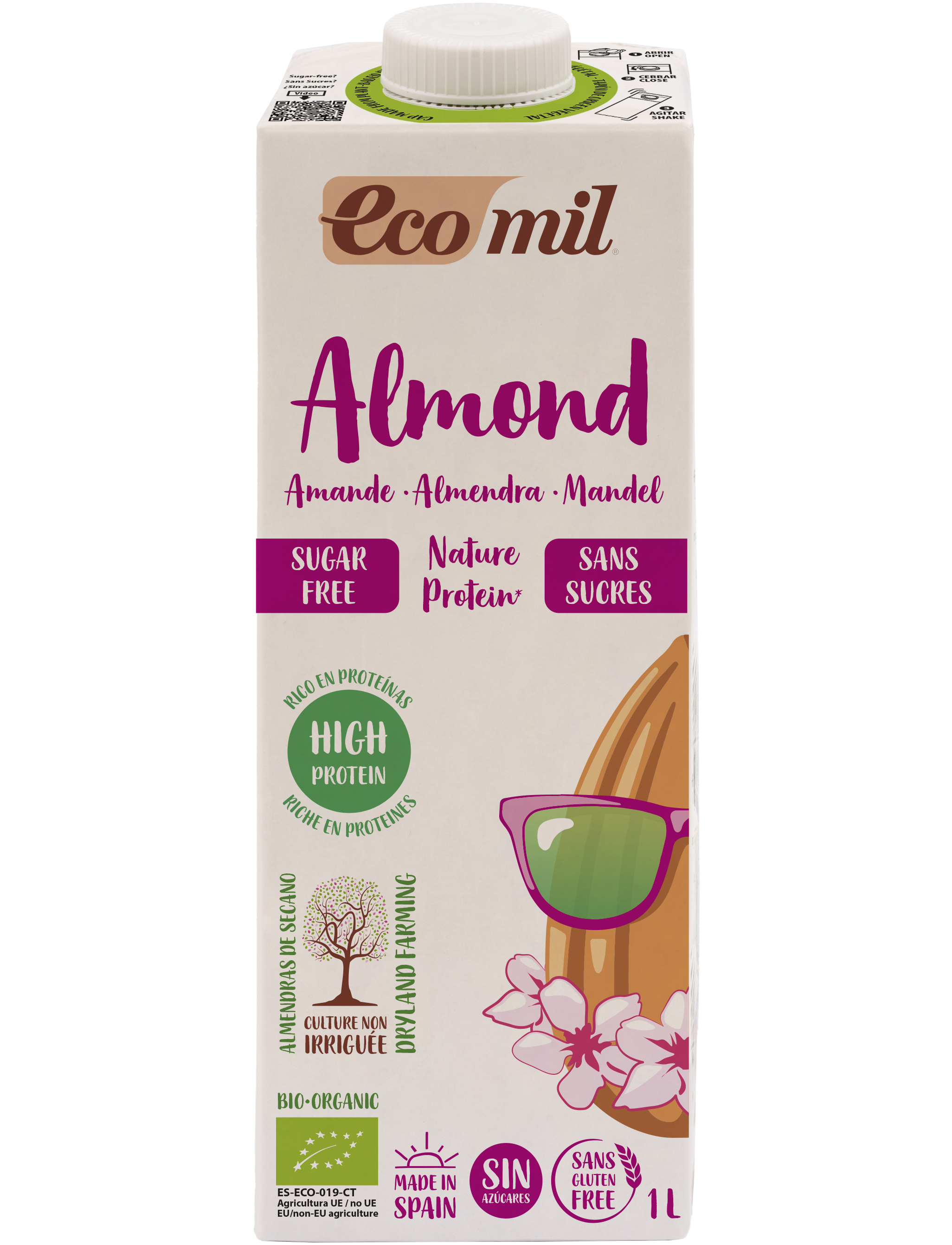 Органічне мигдальне молоко без цукру* з високим вмістом білка, Tetra Brik 1 л.