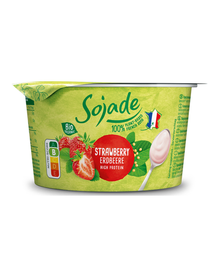 Склад: соєвий сік* 78% (вода, соєві боби* 10,8%), полуниця* 9%, сирий тростинний цукор*, загусники: крохмаль тапіоки* – агар-агар*, натуральний полуничний ароматизатор*, концентрований лимонний сік*, відібрані живі культури з них Bifidus і Lactobacillus acidophilus.*Органічні інгредієнти.