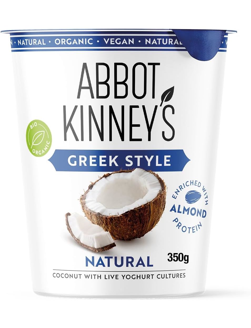 Abbot Kinney's органічний веганський йогурт з ферментованого кокосу "Грецький" об'ємом 350 г — це рослинна альтернатива традиційному грецькому йогурту, виготовлена з натуральних та органічних інгредієнтів. Він має густу, кремову текстуру та ніжний кокосовий смак, що робить його привабливим для веганів, людей з непереносимістю лактози або тих, хто шукає здорові альтернативи молочним продуктам.