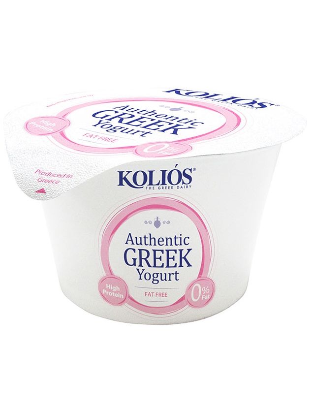 KOLIOS Автентичний ГРЕЦЬКИЙ ЙОГУРТ 0% жирності, виготовлений із знежиреного коров'ячого молока. Версія типового густого грецького зцідженого йогурту 0% жирності зі смачною кремовою текстурою. Насолоджуйтесь ним у чистому вигляді або з медом, фруктами, злаками та горіхами.