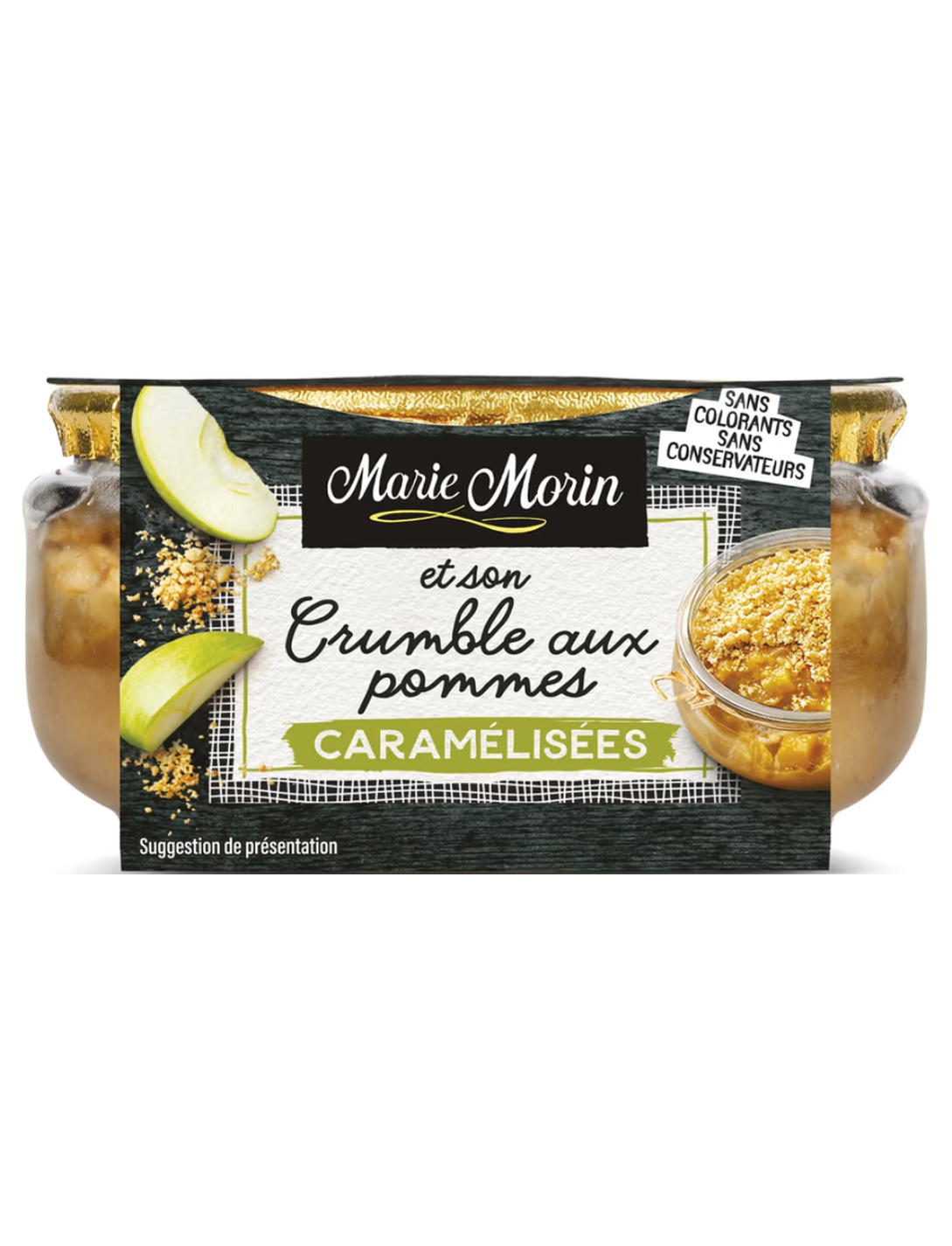 Насолоджуйтесь цим яблучним крамблом Marie Morin холодним або теплим, розігрівши його в духовці та додавши ложкуморозиво з нугидля швидкого повернення в дитинство... Чудово!