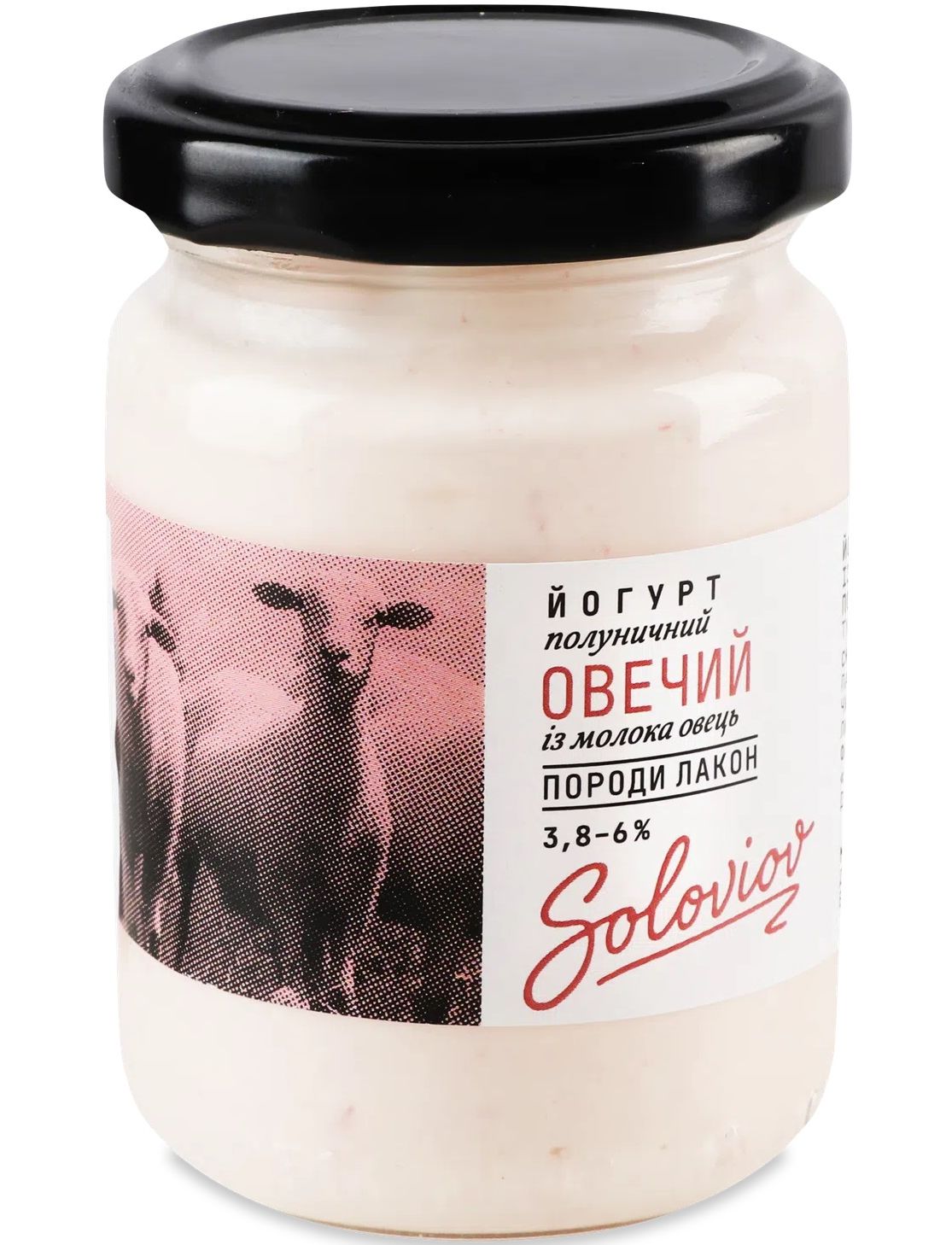 Склад: молоко овече цільне пастеризоване, закваска чистих культур молочнокислих бактерій, наповнювач фруктовий пастеризований "Полуниця".