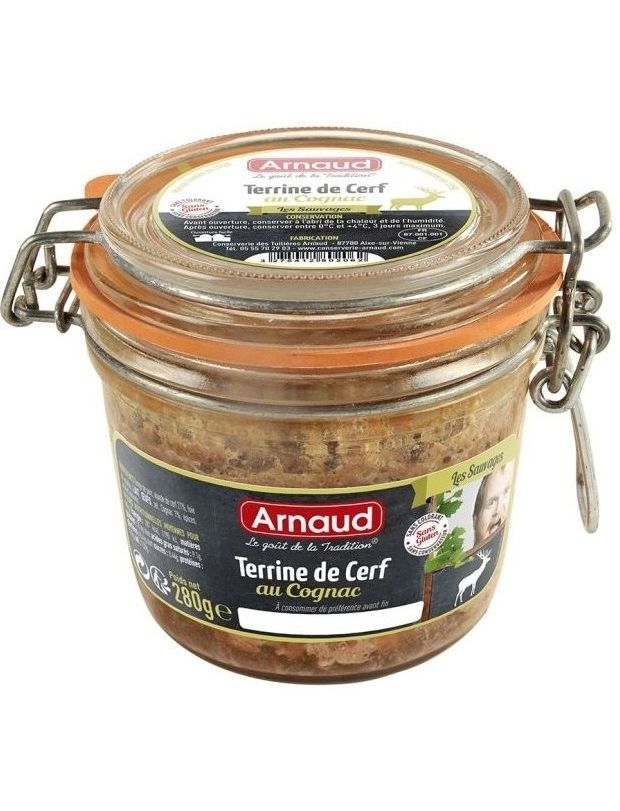 По-справжньому унікальний террін з оленини від преміального французького виробника Arnaud у практичній баночці, що закривається. Насичений смак підсилив додавання коньяку. Ідеально підходить до тостів, крекерів або до хрусткого хліба.
