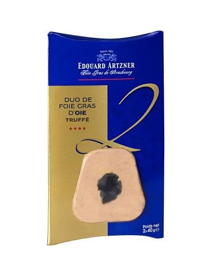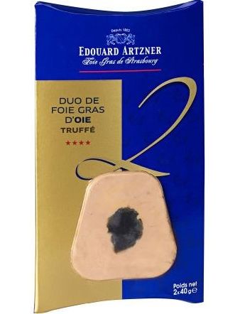 Будинок Edouard Artzner продумав усе, що вам потрібно для вашого аперитиву на двох із цим дуетом шматочків напіврозвареної трюфельної гусячої печінки. Дозвольте себе спокусити ідеальним поєднанням делікатності гусака та сили трюфеля. А якщо ви самі, то наш індивідуальний шматочок паштету з качиної печінки також доступний.
