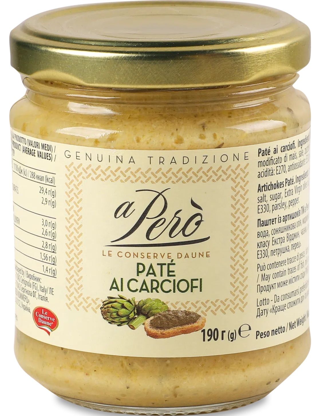 З любові до артишоків народився цей паштет, приготований з найніжніших артишоків для ще більш кремової консистенції та жмені фенхелю для неповторного смаку. Тільки добірні інгредієнти і без консервантів.