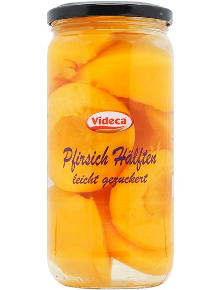 Склад: персики, вода, цукор, підкислювач лимонна кислота, антиоксидант: аскорбінова кислота.