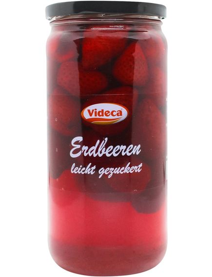 Склад: полуниця, вода, цукор, загущувач: хлорид кальцію (Е509), барвник (Е129).