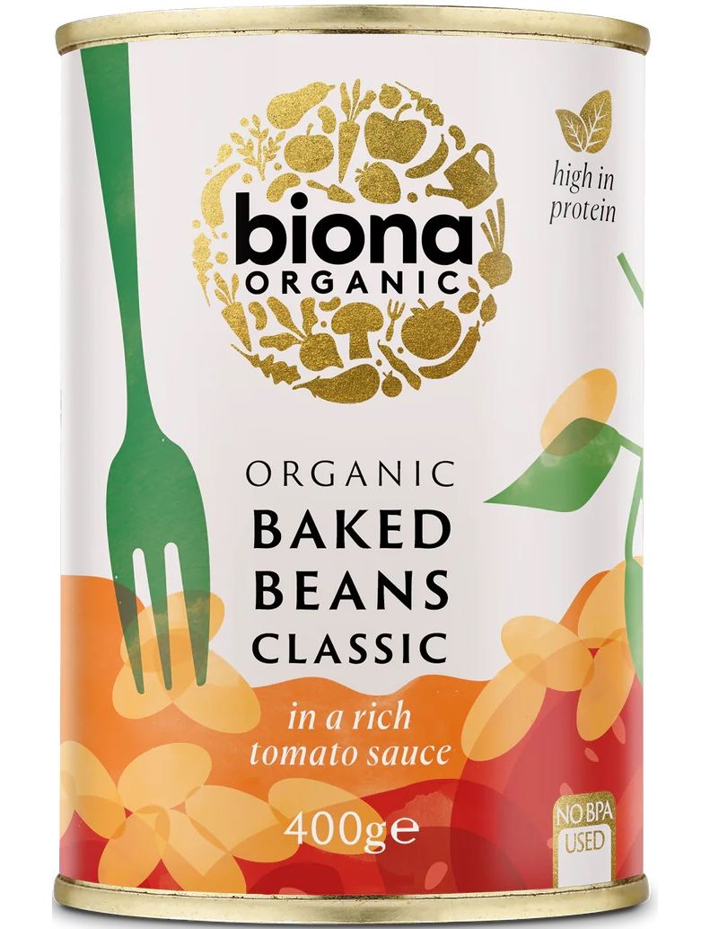 Наша органічна запечена квасоля Biona в томатному соусі, багата білком і клітковиною, є універсальним поживним доповненням до вашої комори. Ці легкі, ароматні боби наповнені насиченим, корисним томатним соусом, створеним з органічно вирощених інгредієнтів. Наша органічна запечена квасоля стане чудовим доповненням до будь-якої страви, якщо її подавати з тостами, печеною картоплею чи як частину ситного англійського сніданку.