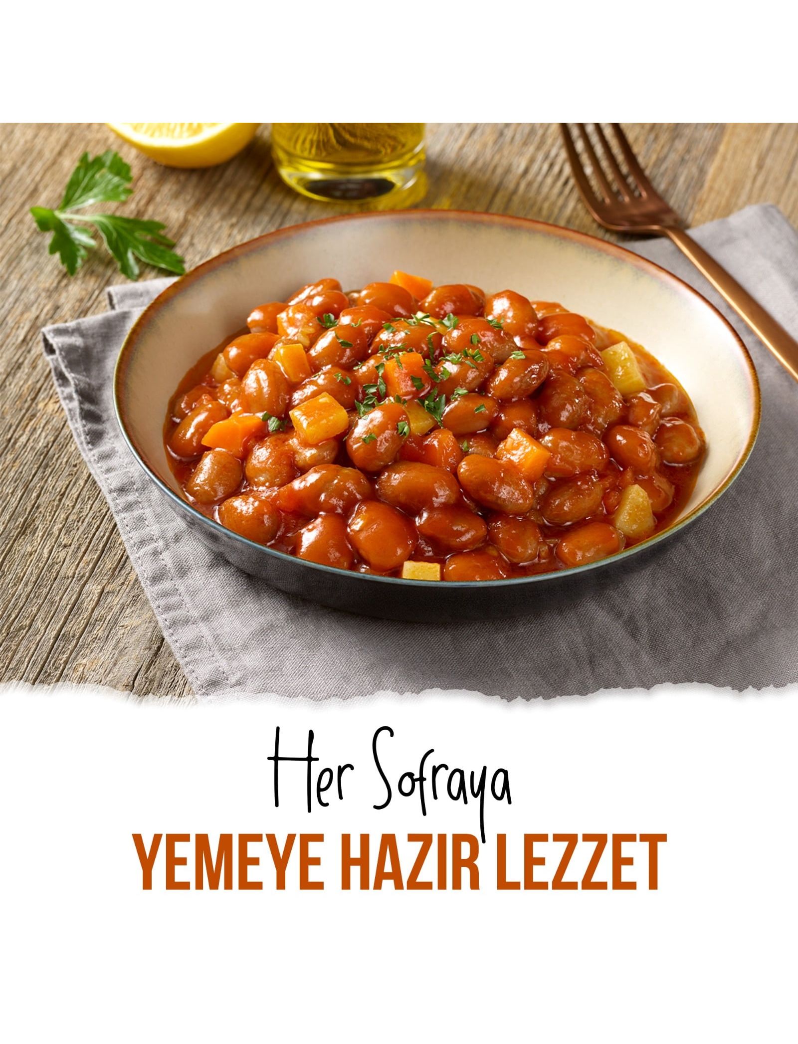 Склад: велика квасоля (64%), вода, томатне пюре (10%), оливкова олія першого пресування (4%), соняшникова олія, цибуля, сіль, гороховий порошок, цукор, спеції.