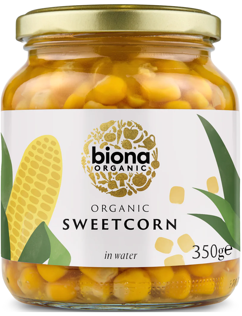 Природно суперсолодка кукурудза, вирощена на органічній сімейній фермі в Північній Італії. Органічна цукрова кукурудза Biona консервується свіжою, лише через кілька годин після збору, щоб зберегти всі поживні речовини.