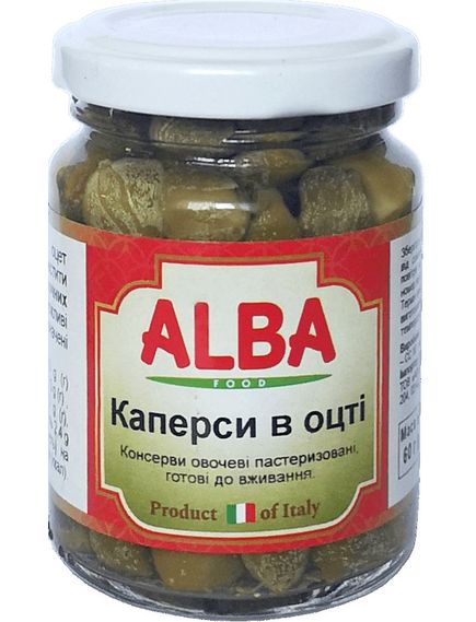 Склад: каперси (55%), вода, оцет (4%), сіль.