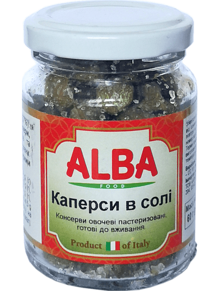 Склад: каперси (63%), сіль (37%).