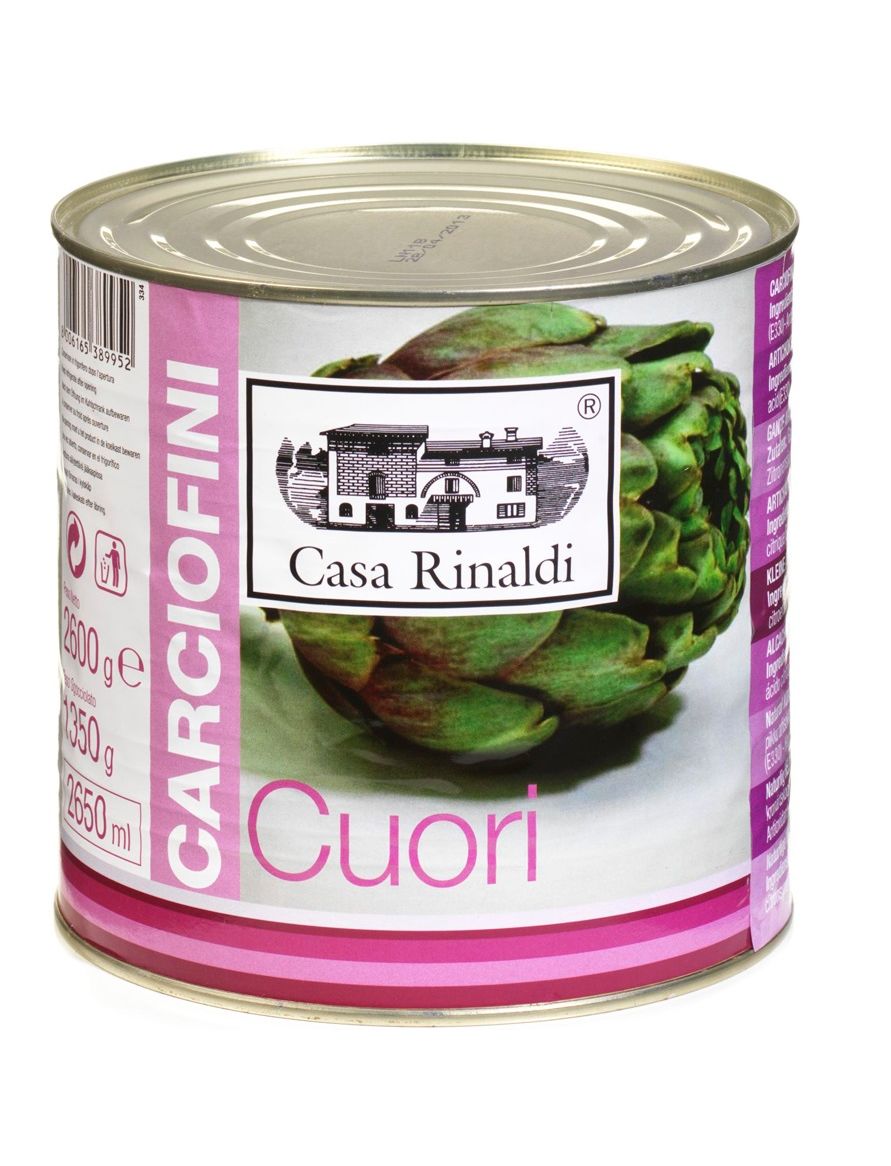 Casa Rinaldi, Италия / Carciofi Cuori / традиционная средиземноморская закуска - маринованные консервированные артишоки. родом из солнечного региона Лацио в Италии / созданы на основе цельных сердцевин артишоков, воды и соли - без добавления маринада / обладают мягкой текстурой, нежным вкусом с легкими травянистыми / идеально подходят для домашнего и профессионального приготовления разнообразных блюд средиземноморской кухни: от легких салатов на основе свежих сезонных овощей и отборного оливкового масла Extra Virgin, до неаполитанской пиццы, пасты и изысканных закусок к вину / для семейного обеда или большого праздничного ужина / для правильного и сбалансированного питания - артишоки богаты на группу витаминов, фосфор, магний, а также органические кислоты - гликолевую, глицериновую и хинную / абсолютно натуральный состав / диетический вегетарианский продукт / удобный формат: жестяная банка сохраняет свежесть продукта надолго / 2600 г