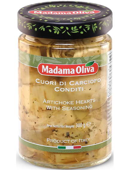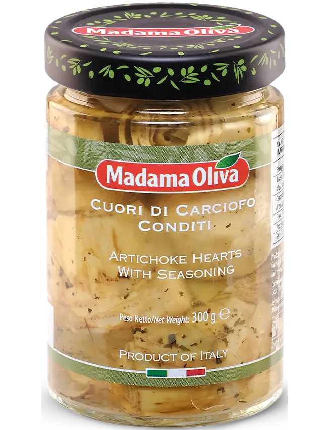 Склад: серцевина артишоку, сіль, соняшникова олія, спеції, натуральні ароматизатори, підкислювач: лимонна кислота, антиоксидант: аскорбінова кислота.