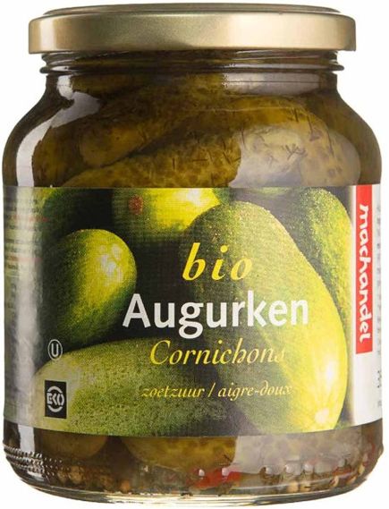 Склад: солоні огірки*, оцет*, сироп агави*, морська сіль, насіння гірчиці (жовте)*. *=З контрольованого органічного сільського господарства.