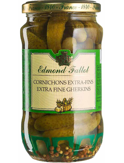 Соління Корнішон від Едмона Фалло неймовірно смачні. Ці корнішони, приправлені високоякісним оцтом, естрагоном, насінням гірчиці та перловою цибулею, надзвичайно хрусткі та ідеально гострі.