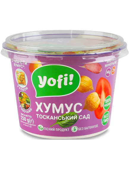 Склад: нут 50%, вода питна, насіння сезам (кунжуту) 10%, гострий перець свіжий 7,3%, томати свіжі 6,4%, перець червоний солодкий свіжий 4,5%, олія соняшникова рафінована, шпинат свіжий 4,3%, сіль кухонна, часник мелений 0,1%, регулятор кислотності – лимонна кислота, сорбінова кислота, бензоат натрію, базилік сушений, душиця сушена, майоран сушений, розмарин сушений, м’ята сушена, тим’ян сушений, чабер сушений, шавлія сушена.