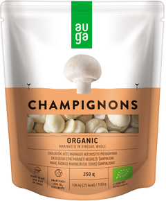 Органічні шампіньйони мариновані Ці органічні шампіньйони з нашої ферми збираються вручну, ретельно відбираються та переробляються на сусідній фабриці. Тому вони завжди упаковані свіжими та мають чудовий смак! Мариновані шампіньйони готові до вживання в якості закуски. Апетитні, хрусткі і...