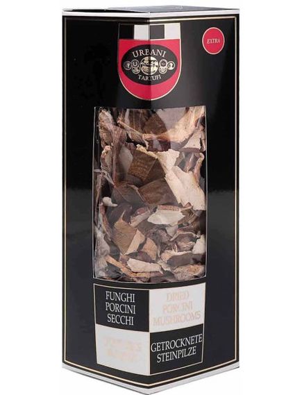 Urbani представляє свої сушені білі гриби дуже великими шматочками. Пропонується в прозорому пакеті, щоб побачити всю їх красу та рідкісні якості.