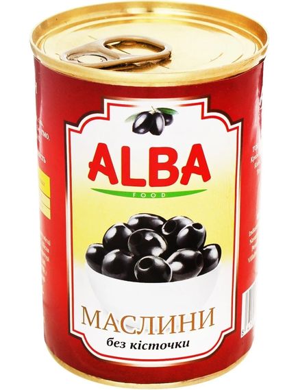 Склад: оливки чорні, вода, сіль, стабілзатор - глюконат заліза.