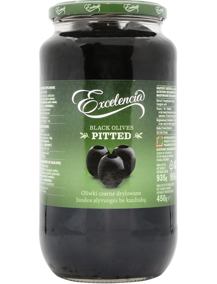 Excelencia чорні оливки без кісточки у банці 950 мл — це ідеальне поєднання смаку, об'єму та практичності. Для кухні, де цінується і якість, і швидкість!