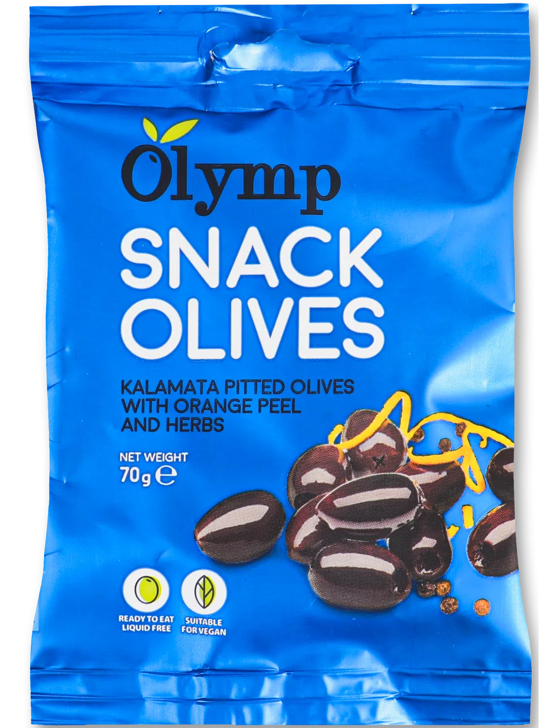 Olymp Оливки чорні Каламата без кісточки з цедрою апельсина та травами 70 г