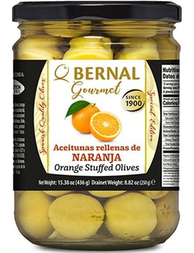 М’який цитрусовий відтінок, який підкреслює смак оливок Manzanilla Olives, відібраних BERNAL за походженням. Смачне та дивовижне поєднання смаків у цих фаршированих оливках, які представляють найкраще з їх походження та передають суть середземноморського смаку. Ніжний цитрусовий відтінок для закусок, коктейлів або доповнення до м’ясних чи рибних страв.