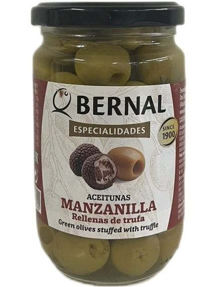 Оливки Bernal фаршировані пастою з трюфеля - це оливки, наповнені ніжною пастою з трюфеля. Паста з трюфеля має особливий аромат і смак з легкою пікантністю. Фаршировані оливки поєднують у собі класичну солоність та м'якість оливок з кремовим та насиченим смаком пастои з трюфеля. Це створює цікаве поєднання текстур та смакових нюансів, яке може бути привабливим для любителів оливок та трюфеля. Оливки Bernal фаршировані пастою з трюфеля можуть використовуватися як самостійна закуска, додаватися до салатів, піци або використовуватися в інших кулінарних стравах для додавання багатства та аромату.