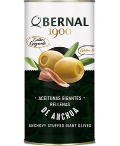 Зроблено в Іспанії Пастеризований продукт Вага з маринадом: 1440 г Суха вага: 600 г Оливки Мансанілья, відібрані за їхній гігантський розмір і начинені смачними кантабрійськими анчоусами. Рецепт BERNAL, високо оцінений і відрізняється від решти рецептів. Вони ідеальні.