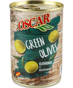 Склад: вода, оливки, сіль, регулятор кислотності Е270. Оливки Oscar потішать вас поєднанням чудового смаку та низької ціни. Використовуйте їх як самостійну закуску, так і доповнення до ваших кулінарних шедеврів. Ідеальне поєднання смаку, зовнішнього вигляду й універсальності застосування...