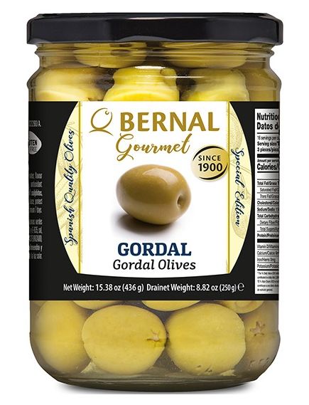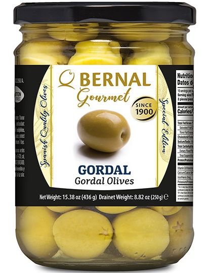 Олива, що виділяється своїм великим розміром і м'ясистістю з Севільї. Це сорт оливок найбільшого розміру та калібру, який можна знайти в іспанських урожаях. Він світло-зеленого кольору і має м’який і смачний смак. У BERNAL ми ретельно відбираємо їх для приготування та пакування, в результаті чого виходять оливки, які самі по собі є вишуканим шматком.