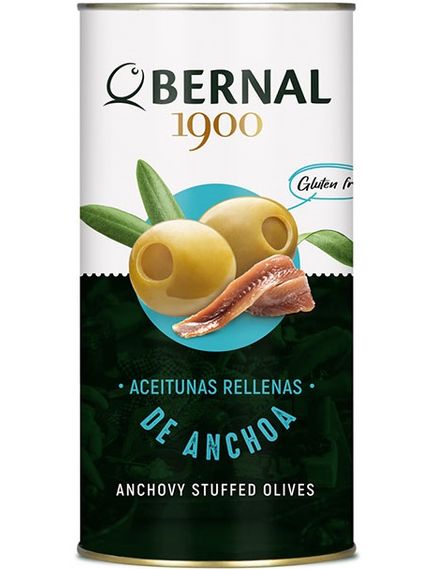 Оливки Мансанілья, фаршировані цінними кантабрійськими анчоусами. Це найбільш споживана оливка в Іспанії. У BERNAL ми виготовляємо їх на наших підприємствах за власним рецептом, з оптимальним рівнем солі. Самі по собі вони є одними з найцінніших закусок.