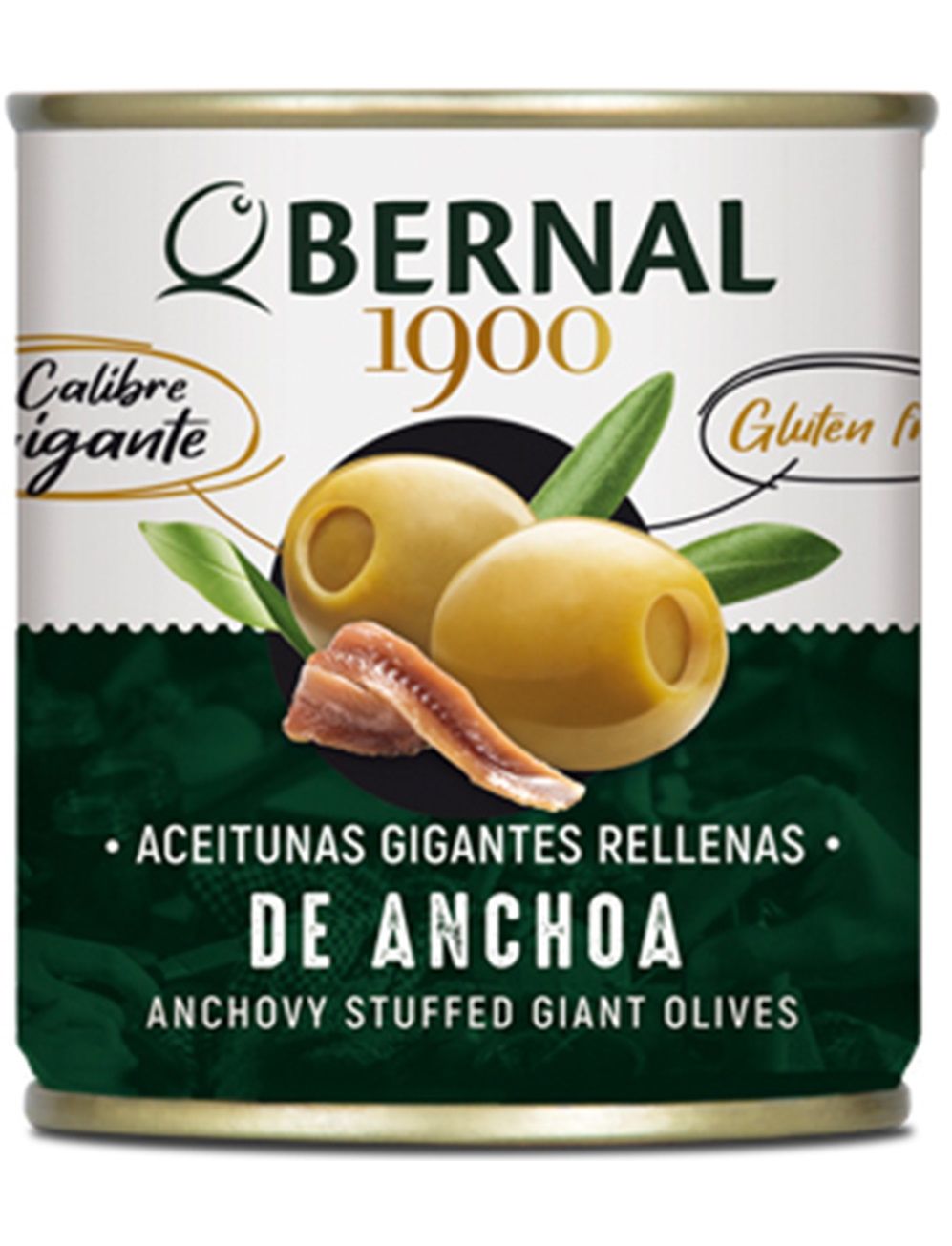 Оливки Мансанілья, відібрані за їхній гігантський розмір і начинені смачними кантабрійськими анчоусами. Рецепт BERNAL, високо оцінений і відрізняється від решти рецептів. Вони ідеальні.